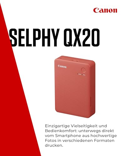 Canon SELPHY QX20 mobiler Fotodrucker – per WLAN direkt vom Smartphone drucken. Thermosublimationsdruck, 2 Größen Stickerpapier und Laden per USB-C – Terrakotta (ohne Farband/Papier)