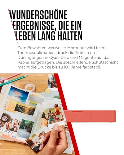 Der Drucker ist benutzerfreundlich gestaltet. Die Verbindung über WLAN zu deinem Smartphone erfolgt schnell und unkompliziert, was das Drucken von Bildern zu einem mühelosen Erlebnis macht. Die Verwendung der dazugehörigen App erklärt sich intuitiv und ist einfach zu bedienen.