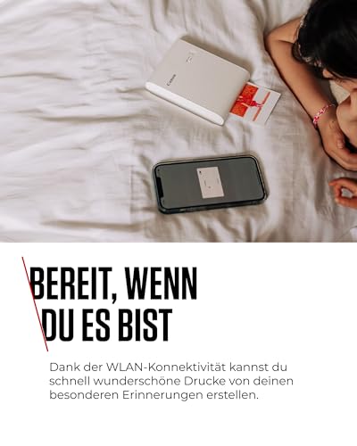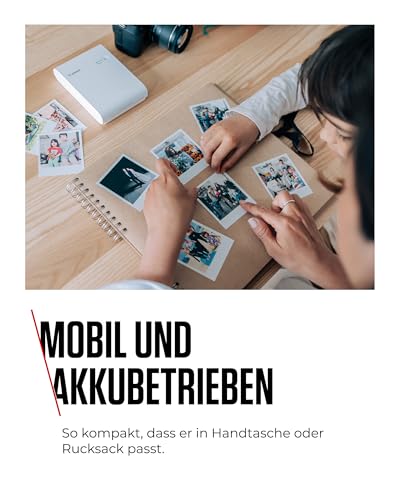 Mit einem Gewicht von nur 480 g und einem kompakten Design ist der Fotodrucker extrem mobil. Er passt problemlos in jede Handtasche oder jeden Rucksack, was ihn ideal für unterwegs macht.