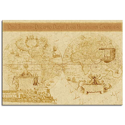 Steam Wandkunst Karte der Welt, Leinwanddruck, antikes Poster für Zuhause, Set von 1 Dekorationen, ungerahmt, 61 x 40,6 cm