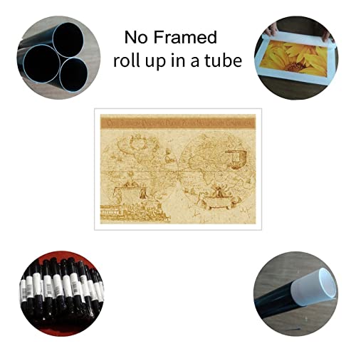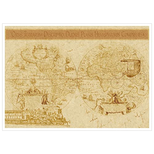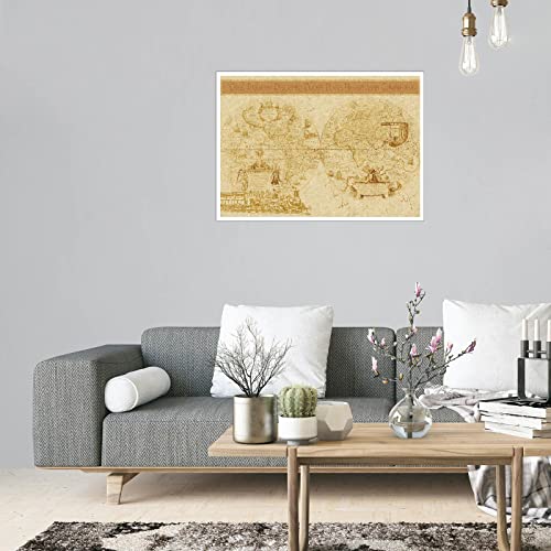 Dampf-Wandkunst, Karte der Welt, Leinwanddruck, antikes Poster für Zuhause, Set mit 1 Dekorationen, ungerahmt, 45,7 x 30,5 cm