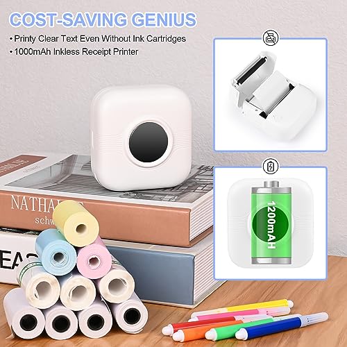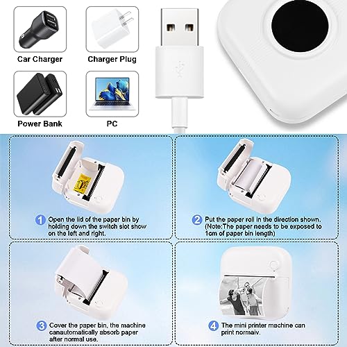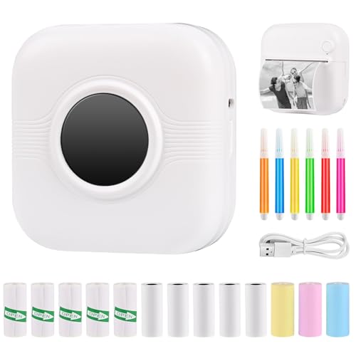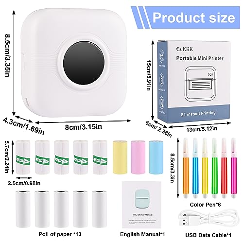 GuKKK Mini Drucker, Mobiler Fotodrucker, Tragbarer Mini Fotodrucker, Wireless Fotodrucker Thermodrucker mit 13 Rollen Druckerpapie und 6 Buntstifte, Smartphone Bluetooth, für Liste, Journal
