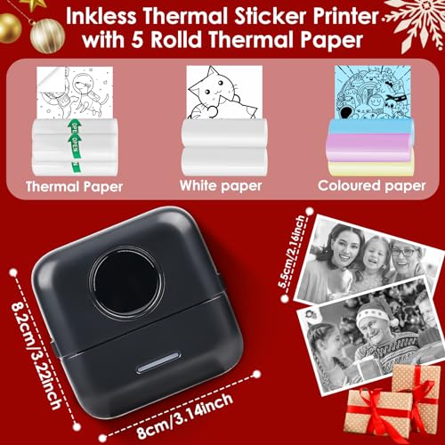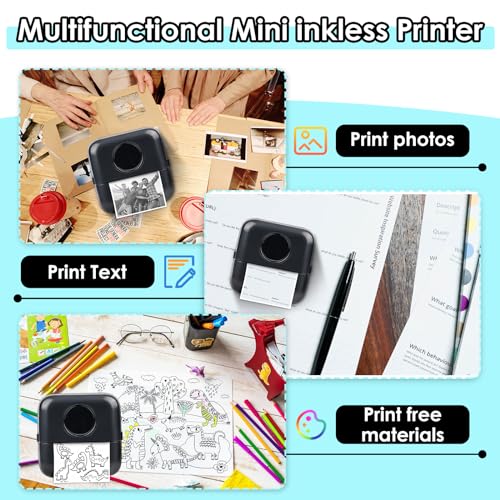 GuKKK Mini Drucker, Mobiler Fotodrucker, Tragbarer, Wireless Thermodrucker, mit 13 Rollen Druckerpapie und 5 Buntstifte, für Lernhilfe,Lernnotizen,Journal,Notizen,Liste