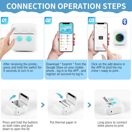 | Features | 【Thermal Inkless Printing Technology】: Der Bluetooth-Thermodrucker verwendet die Thermodrucktechnologie, verwendet keine Tinte, ist bequemer zu bedienen, umweltfreundlicher, unterhaltsamer und praktischer. Thermische Schwarz-Weiß-Druckbilder, damit Ihre Schwarz-Weiß-Fotos elegant und cool aussehen. Hinweis: Wenn der Druck nach mehrmaligem Gebrauch des Fotodruckers nicht klar ist, können Sie den Laserbalken des Druckers mit Alkohol abwischen (der Laserbalken befindet sich im Papierladefach)., 【Bluetooth-Sofortverbindungsdrucker】: Der Drucker verwendet die ''Fun Print''-APP-Bluetooth-Verbindung, es sind keine weiteren komplizierten Vorgänge erforderlich. Befolgen Sie einfach die Verbindungsanweisungen, um schnell eine Verbindung zu einem beliebigen Smartphone herzustellen, und Sie können Ihre Reise zum drahtlosen Schwarzweißdruck beginnen Um das Wachstum Ihres Kindes und die Bedeutung des Reisens festzuhalten, spüren Sie die Freude an schönen Erinnerungen., 【Ausgezeichnete Leistung Bluetooth-Drucker】: Tragbarer Drucker mit super Druckqualität, 200 DPI hoher Auflösung, eingebautem wiederaufladbarem 1200-mAh-Li-Ion-Akku mit hoher Dichte, längerer Akkulaufzeit, hochwertiger Fotodrucker, um schöne Momente besser festzuhalten. Nachdem Sie diese wunderschöne Landschaft gesehen haben, können Sie die verlorene Schönheit in klaren Bildern wiederentdecken., 【Netter und praktischer Sofortdrucker】: Mini-Smartphone-Foto-Thermodrucker, elegantes und einfaches, aber niedliches Aussehen, kompakte und leichte Körpergröße, kann auf Reisen in eine Tasche oder Tasche gesteckt werden, Sie können ihn mitnehmen, einfach jedes Sie aufzeichnen etwas loggen möchte., 【Der beste Mini-Fotodrucker für Geschenke】: Er unterstützt eine Vielzahl von funktionalen Anwendungen und kann Fotos, Aufkleber, Arbeitspläne usw. drucken. Er ist eine ausgezeichnete Geschenkauswahl für Studenten, Paare, Familienmitglieder, Freunde usw. und ein kleiner Assistent, um ein gutes Leben aufzunehmen! |