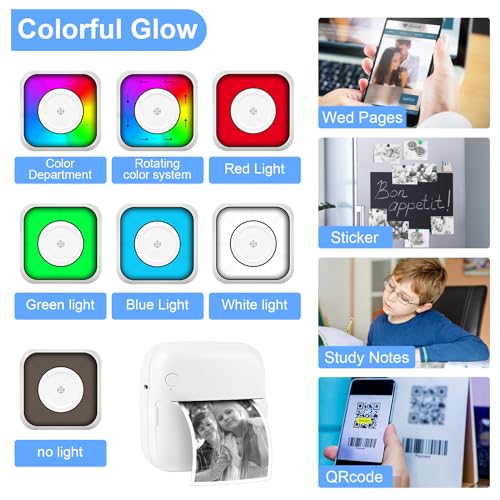 GuKKK Mini Drucker, Mobiler Fotodrucker, Tragbarer Mini Fotodrucker mit Sieben Farben LED, Wireless Fotodrucker Thermodrucker, Smartphone Bluetooth Drucker, für Lernhilfe,Lernnotizen,Journal (Farbe)