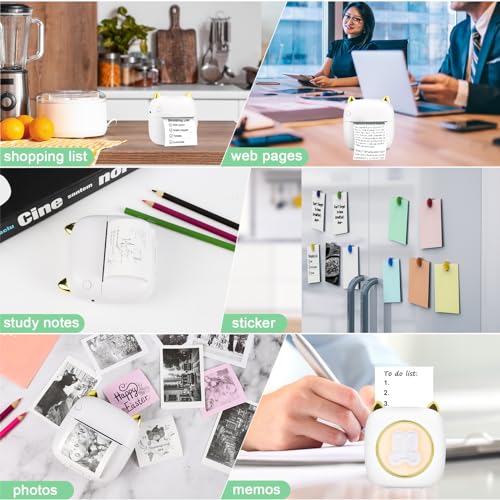 | Features | 【Thermal Inkless Printing Technology】: Der Bluetooth-Thermodrucker verwendet die Thermodrucktechnologie, verwendet keine Tinte, ist bequemer zu bedienen, umweltfreundlicher, unterhaltsamer und praktischer. Thermische Schwarz-Weiß-Druckbilder, damit Ihre Schwarz-Weiß-Fotos elegant und cool aussehen. Hinweis: Wenn der Druck nach mehrmaligem Gebrauch des Fotodruckers nicht klar ist, können Sie den Laserbalken des Druckers mit Alkohol abwischen (der Laserbalken befindet sich im Papierladefach)., 【Bluetooth-Sofortverbindungsdrucker】: Der Drucker verwendet die ''Fun Print''-APP-Bluetooth-Verbindung, es sind keine weiteren komplizierten Vorgänge erforderlich. Befolgen Sie einfach die Verbindungsanweisungen, um schnell eine Verbindung zu einem beliebigen Smartphone herzustellen, und Sie können Ihre Reise zum drahtlosen Schwarzweißdruck beginnen Um das Wachstum Ihres Kindes und die Bedeutung des Reisens festzuhalten, spüren Sie die Freude an schönen Erinnerungen., 【Ausgezeichnete Leistung Bluetooth-Drucker】: Tragbarer Drucker mit super Druckqualität, 200 DPI hoher Auflösung, eingebautem wiederaufladbarem 1200-mAh-Li-Ion-Akku mit hoher Dichte, längerer Akkulaufzeit, hochwertiger Fotodrucker, um schöne Momente besser festzuhalten. Nachdem Sie diese wunderschöne Landschaft gesehen haben, können Sie die verlorene Schönheit in klaren Bildern wiederentdecken., 【Netter und praktischer Sofortdrucker】: Mini-Smartphone-Foto-Thermodrucker, elegantes und einfaches, aber niedliches Aussehen, kompakte und leichte Körpergröße, kann auf Reisen in eine Tasche oder Tasche gesteckt werden, Sie können ihn mitnehmen, einfach jedes Sie aufzeichnen etwas loggen möchte., 【Der beste Mini-Fotodrucker für Geschenke】: Er unterstützt eine Vielzahl von funktionalen Anwendungen und kann Fotos, Aufkleber, Arbeitspläne usw. drucken. Er ist eine ausgezeichnete Geschenkauswahl für Studenten, Paare, Familienmitglieder, Freunde usw. und ein kleiner Assistent, um ein gutes Leben aufzunehmen! |