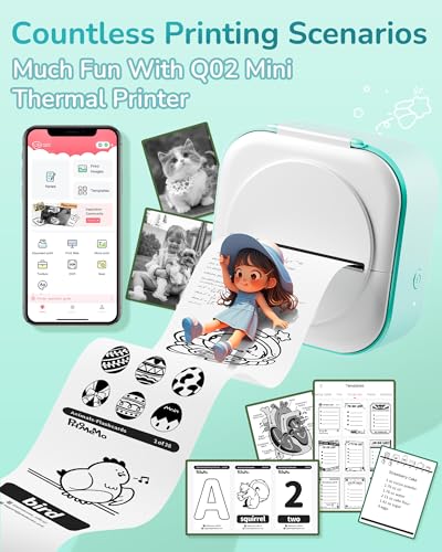 | Features | Tragbarkeit – Q02 Mini Drucker ist klein, leicht und einfach zu transportieren. Egal, ob Sie auf Reisen sind, am Unterricht teilnehmen oder im Büro arbeiten, er passt problemlos in Ihre Tasche, ohne zu viel Platz einzunehmen, Bluetooth – Dank des integrierten Bluetooth-Moduls kann der Q02 Tiny Drucker kabellos mit Smartphones verbunden werden, ohne dass zusätzliche Kabel erforderlich sind. Benutzer können Druckbefehle direkt von der mobilen App aus senden, um schnell zu drucken, Unbemerkt – Die Thermo technologie verwendet Thermopapier und ein Heizelement, um Bilder zu erzeugen, ohne dass Patronen oder Tinte benötigt werden. Dies senkt nicht nur die Druckkosten, sondern vermeidet auch das Risiko des Auslaufens von Tinte und macht den Austausch von Verbrauchsmaterialien einfacher., Druckerbuddy – Der Q02 Mini Drucker eignet sich für Benutzer, die häufig Informationen aufzeichnen müssen, wie z. B. Studenten und Forscher. Mit dem q02 Druckerbuddy können Studienmaterialien, Notizen oder Entwürfe schnell ausgedruckt werden, so dass die Benutzer ihre Studien besser organisieren und überprüfen können, Fotodrucker – Q02 Foto drucker kann nicht nur Texte und Grafiken, sondern auch Fotos drucken. Auch wenn die Druckqualität nicht an die professioneller Fotodrucker heranreicht, bietet der Handydrucker für Privatanwender eine bequeme und schnelle Möglichkeit, Fotos aus dem Alltag zu drucken und weiterzugeben, DIY – Die Benutzer können mit Thermostickern personalisierte Aufkleber drucken. Diese Aufkleber können zum Verzieren von Notizbüchern, Mobiltelefonen, Laptops usw. oder zum Erstellen von Etiketten und Hinweisen verwendet werden, was den Spaß und die Nützlichkeit des Druckers noch erhöht, Das Paket enthält: 1 Drucker, 3 Rollen Verbrauchsmaterial (weiß, grün, lila), 1 x USB-A auf USB-C Kabel, 1 Kopie der Gebrauchsanweisung |