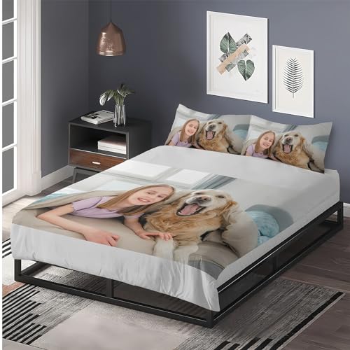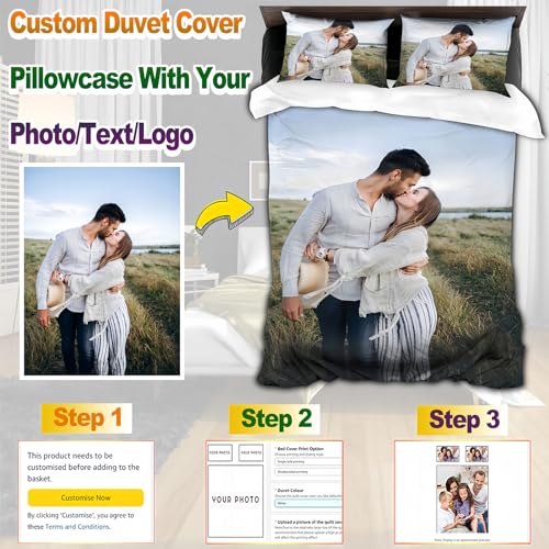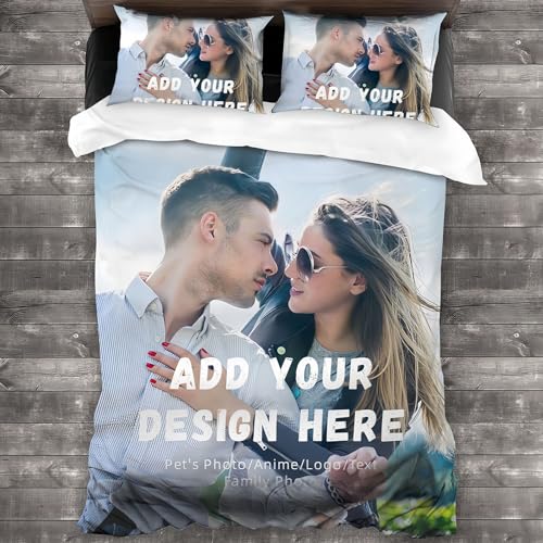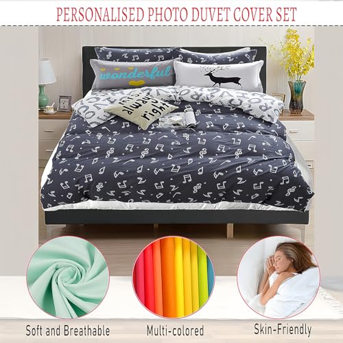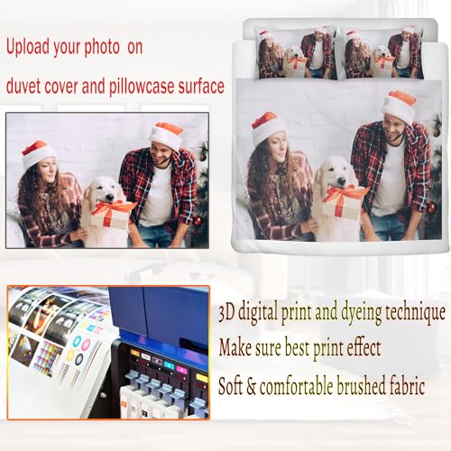 Kitlay Bettwäsche Personalisiert Foto Bettbezug, Individueller Dreiteiliges Set mit jedem Foto/Text/Logo, individuelles Bettwäsche Set, unvergessliches Geschenk für Familie (135 × 200 cm)