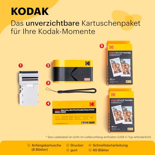Features | [Geschenk, das immer Freude bringt] Es wird dir wirklich Freude bereiten, deinen Lieben das Kodak Mini 2 ERA zu schenken. Verschenke diesen Fotodrucker an deine Liebsten und halte ein Leben lang glückliche Momente mit ihnen fest., [Drucke in Premiumqualität] 24Bit / 16,7 Millionen Farben. Verfeinerte Sättigung und verbesserte Farbdarstellung durch "Highlight Saturation" Verbesserung. Dank der 4PASS-Technologie liefert der Kodak Mini 2 ERA makellose Ausdrucke. Die laminierten, mehrschichtigen Ausdrucke sind fingerabdruck- und wasserfest und sorgen dafür, dass deine Erinnerungen ein Leben lang halten., [Zwei Fotoarten] Mit dem Kodak Mini 2 ERA kannst du dein Fotoerlebnis individuell gestalten und hast die Wahl zwischen Abzügen mit und ohne Rand. Mit diesem Fotodrucker kannst du bleibende Erinnerungen schaffen, indem du deine Erinnerungen in der randlosen Art niederschreibst. Du kannst die randlose Art von Fotos drucken, wenn du sie in einem größeren Format haben möchtest., [Kompakte Größe] Tragbarkeit für unvergessliche Erinnerungen! Erlebe die kompakte Größe des Kodak Mini 2 ERA, der so entworfen wurde, dass er nahtlos in deine Hände und deine Tasche passt. Wo auch immer dich das Leben hinführt, dieser Bluetooth-Drucker sorgt für bequemes und sofortiges Drucken von unvergesslichen Erinnerungen mit deinen Lieben., [Niedrigste Fotokosten] Verabschiede dich von teuren Fotos! Der Kodak Mini 2 ERA macht das Drucken zum Kinderspiel und bietet Fotos zum halben Preis, wenn du ihn im Patronenpaket kaufst. Mit diesem tragbaren Fotodrucker kannst du mehr drucken und mehr sparen., [Brandneues Design] Der Kodak Mini 2 ERA wurde von den alten 35-mm-Filmen von Kodak inspiriert und verfügt über eine neu gestaltete Textur, eine Abdeckung für den Ladeanschluss und nicht überstehende Trageriemen für einen verbesserten, stabilen Griff. Erfreue dich an der klassischen Ausstrahlung mit einem Hauch von modernem Komfort. |