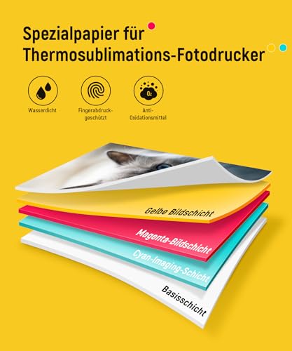 Dank der Thermosublimations-Technologie liefert das Fotopapier besonders hochwertige Drucke. Die Farben sind lebendig und detailreich, was zu einem professionellen Finish führt. Jedes Foto wird präzise reproduziert, wodurch deine digital gespeicherten Bilder lebendig werden.