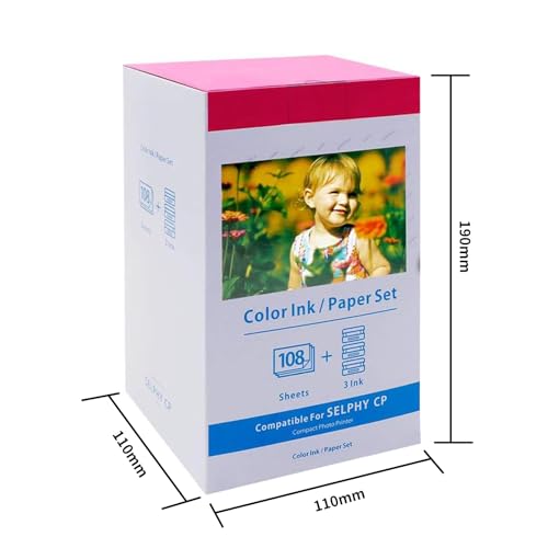 | Features | 3 Druckerkartusche und 108 Papier (eine Tinte für 36 Blatt Papier). PAPIERFORMAT: 100 x 148 mm (4 x 6 "), Die Größe der Drucke ist Postkartengröße. MODELL: KP-108IN, 3115B001 (AA), Perfekt kompatibel mit Canon Selphy CP Fotodrucker-Serie: CP100, CP200, CP220, CP300, CP330, CP400, CP510, CP600, CP710, CP720, CP730, CP740, CP760, CP770, CP780, CP790, CP800, CP810, CP820, CP900, CP910, CP1000, CP1200, CP1300, CP1500, Die Drucke verfügen über eine einzigartige Farbsublimationstechnologie für außergewöhnliche farbenfrohe Ergebnisse, stellen sicher, dass Fotos lange gespeichert werden können, ohne zu verblassen, Die KP-108IN eignet sich hervorragend zum Ausdrucken von bunten Bildern und Drucke direkt aus Ihrem Drucker zu Hause, im Büro und überall, Tipps:1.Stellen Sie sicher, dass selphy CP Series Drucker (nicht kompatibel selphy square qx10). 2. Berühren Sie kein glänzendes Papier innerhalb des Druckbereichs. 3.Stellen Sie sicher, dass "6in" patrone+ "6in" papier+"P" Papierfach ist. 4.Um Farbbandverschwendung zu vermeiden, installieren Sie bitte die Kartusche nach dem Einschalten des Druckers und nehmen Sie sie vor dem Ausschalten heraus |
