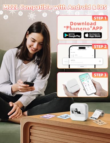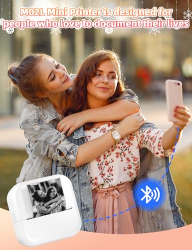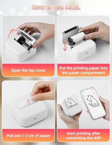 Memoking Mini Drucker für Smartphone – Handy Drucker M02L Bluetooth Fotodrucker Aufkleber Drucker mit 1 Aufkleber Papierrolle, Mini Thermodrucker für Fotos, Studiennotizen, DIY Erstellung (Weiß)