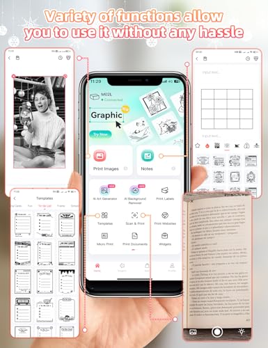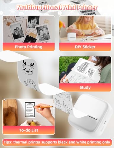 Zusätzlich ermöglicht der Mini Drucker das Drucken von Fotos, Journalen und sogar DIY-Projekten. Die umfangreiche Auswahl an Vorlagen und Grafiken eröffnen zahlreiche kreative Möglichkeiten für jedes Alter.