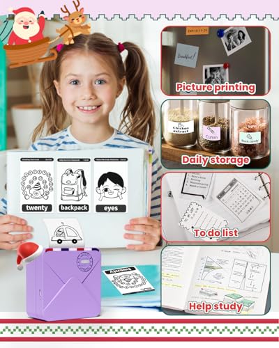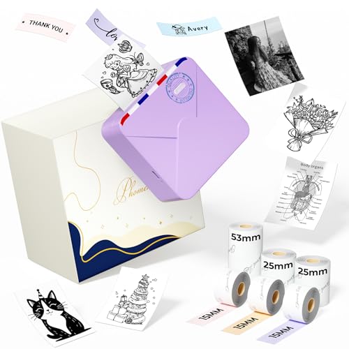 Phomemo M02S Mini-Fotodrucker Set-Wireless Bluetooth 300dpi Tragbarer HD-Druck mit wiederaufladbarem Akku, Geeignet für Journal Organisationsfotos, Kompatibel mit iPhone & Android, Lila
