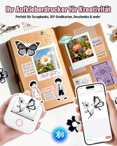 Der Phomemo T02 Mini Etikettendrucker ist kompakt und leicht, ideal für kreative Projekte. Mit Bluetooth-Verbindung druckst du schnell Schwarz-Weiß-Fotos und Etiketten. Spare Geld durch thermisches Drucken ganz ohne Toner oder Tinte – perfekt für alle Bastler!