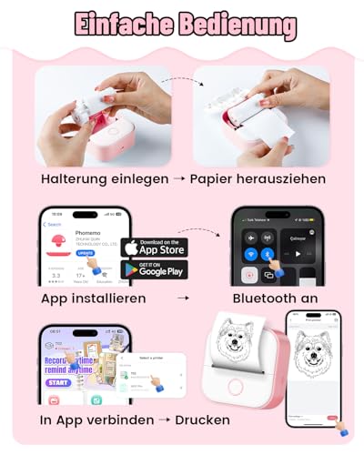 | Features | Lustige Geschenke: T02 mini drucker kann verwendet werden, um Schwarz-Weiß-Fotos zu drucken, um Haftnotizen, Sammelalben, Notizen, Etiketten und etc. zu machen.Diese Aufkleber Maker Maschine kann die Kreativität der Kinder und Eltern-Kind-Aktivitäten zu kultivieren.Mini fotodrucker für phone – muss ein lustiges Geschenk für Kinder, Studenten, Lehrer und DIY Handwerker an Weihnachten, Kindertag oder Thanksgiving-Tag, Print Instantly: Download Phomemo APP → Wireless Bluetooth verbunden die T02 Etikettendrucker → Drucken Sie, was Sie wollen.Totally 10 Sekunden, um die Reise drahtlosen Drucker.Palm Größe Tasche Aufkleber Maker unterstützt alle Smartphones, aber nicht unterstützen Computer-Geräte, Endless Imagination APP: 14 leistungsstarke Funktionen, um Ihre einzigartige Kreation zu berühren.Und Ozeane von Vorlagen, Grafiken, Themen werden kontinuierlich alle 2 Wochen aktualisiert.Sie können auch einige billige bunte Druckpapiere wählen, um Ihre Arbeit reicher und das Leben interessanter zu machen.Vielseitiger inkless label printer fotodrucker, Sparen Sie 1000$ pro Jahr: T02 lablers sticker maker machine mini printer, verwendet das Prinzip der thermischen Bildgebung, um schnell 203dpi HD-Druck zu erreichen.Im Vergleich zu anderen Druckern – keine Notwendigkeit Toner, Tinte und Farbbänder, sparen 1000$ pro Jahr – die inklusiven Taschendrucker brauchen nur umweltfreundliches Thermopapier.T02 kompakte kleine Drucker – Geld sparende Helfer(Paper Specification: 50 mm / 53 mm), Was Sie bekommen: 1x inklusiv tragbare Aufkleber Drucker, 1x Aufkleber Rolle, 1x Netzkabel, 1x Papierhalter Schallwand, 1x Bedienungsanleitung |