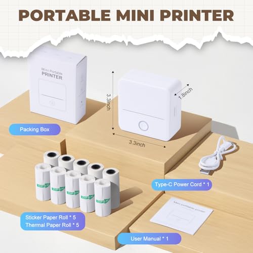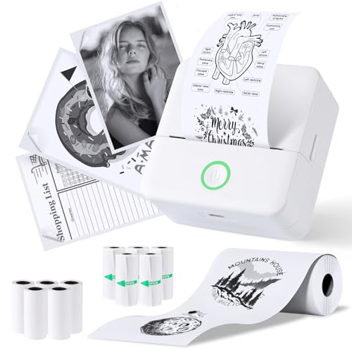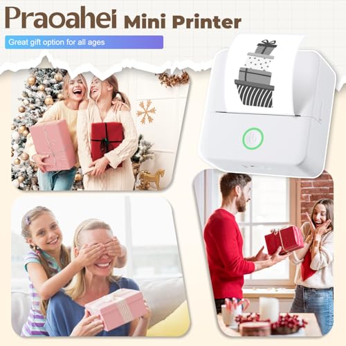 PRAOAHEI Mini Drucker, Tragbarer Fotodrucker mit 10 Rollen Druckerpapier, Bluetooth-Etikettendrucker, Thermodrucker für Notizen, Fotos, Tagebücher, Heimwerken, kompatibel mit iOS und Android (Weiß)