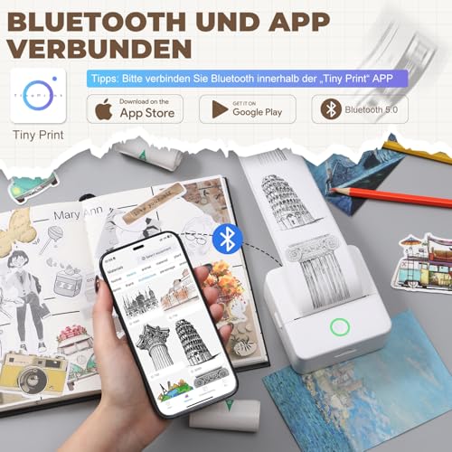 - Bluetooth-Verbindung über die „Tiny Print“-App für einfache Steuerung