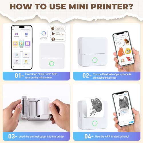 | Features | Maßgeschneiderter Thermotintenloser Drucker: Der tintenlose Aufkleberdrucker verwendet Thermodrucktechnologie und ist mit 5 Rollen Aufkleberpapier und 5 Rollen Thermodruckpapier ausgestattet, tintenfreies Drucken. Das 2 Zoll breite Thermopapier kann frei auf Länge oder Form sowie Etikettengröße zugeschnitten werden, damit Sie jederzeit und überall Ihre eigenen Aufkleberideen erstellen können (nur Schwarzweiß), Bluetooth-One-Click-Druck-App: Der Etikettendrucker nutzt die Bluetooth-Verbindung der „Tiny Print“-App, es sind keine weiteren komplizierten Vorgänge erforderlich, folgen Sie einfach den Verbindungsanweisungen, um eine schnelle Verbindung zum Smartphone herzustellen. Die App ist mit kostenlosen Zoom- und Drag-Optionen, OCR-Funktionen und Aufklebern ausgestattet. Viele Vorlagen, Bearbeitungsoptionen und Text, Lange Akkulaufzeit und 200 DPI-Auflösung: Der Sticker-Maker verfügt über einen integrierten wiederaufladbaren 1200-mAh-Lithium-Ionen-Akku mit hoher Dichte und 200 dpi hochauflösendem Druckbild zum Schutz der Augen von Kindern. Hinweis: wenn der Druck nach mehrmaligem Gebrauch nicht klar ist, können Sie den Laserbalken des Druckers mit Alkohol abwischen (der Laserbalken befindet sich im Papierfach), Kompakte und tragbare Größe: Mini-Thermodrucker für Telefone, elegantes, niedliches Aussehen, kompakte und leichte Gehäusegröße, kann in einer Schultasche oder Tasche getragen werden, auf einem Schreibtisch, Bürotisch oder in der Küche aufgestellt werden, ohne Platz zu beanspruchen, Sie können jederzeit Studiennotizen oder Arbeitspläne aufzeichnen, um Ihren verschiedenen Druckanforderungen gerecht zu werden, Multifunktionaler Minidrucker: Mit dem Mini-Aufkleberdrucker können Sie Schwarzweißfotos, Bilder, Lernnotizen, To-Do-Listen, Einkaufslisten usw. drucken sowie Lesezeichen, Etiketten, Zeitschriften und Grußkarten individuell gestalten. Die App enthält eine Vielzahl von Vorlagen und ist mit Android 4.0 und IOS 9.0 oder höher kompatibel. |