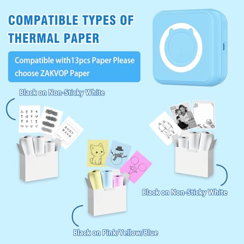 Der ZAKVOP Mini-Drucker für Smartphones verbindet sich über Bluetooth und druckt mit 300 DPI klar und praktisch. Perfekt für Notizen und kreative Projekte, passt er in jede Tasche und bietet ein tolles Geschenk für Familie und Freunde.