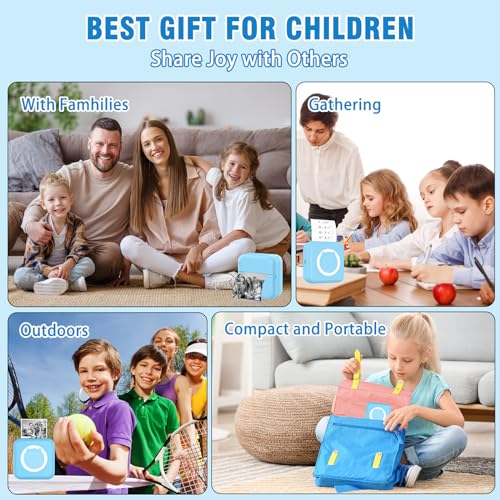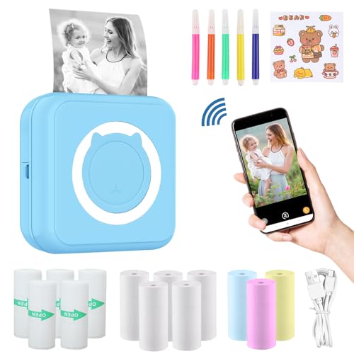 mini drucker für smartphone, fotodrucker für smartphone, mini drucker aufkleber, Bluetooth tragbarer thermodrucker für iOS und Android, mini drucker 300DPI für Journal, Notizen, Liste, Memo – Blau
