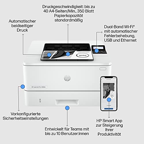 HP LaserJet Pro 4002dn Laserdrucker, 30€ Cashback, Automatischer beidseitiger Druck, Hohe Druckgeschwindigkeit, Hi-Speed USB, Ethernet, HP Smart App, HP Wolf Pro Security
