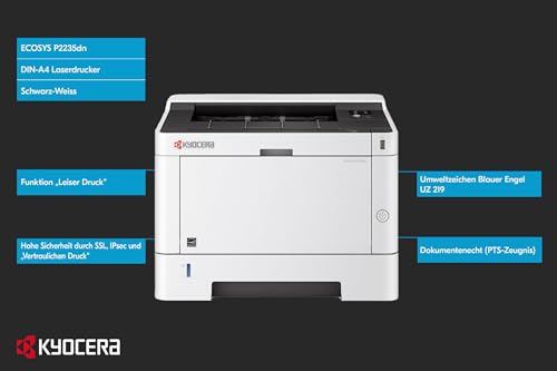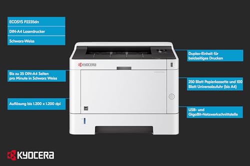 Kyocera Ecosys P2235dn Laserdrucker Schwarz Weiss, Drucker Schwarz Weiss mit Duplex-Einheit, 35 Seiten pro Minute. Laserdrucker Inkl. Mobile Print Funktion