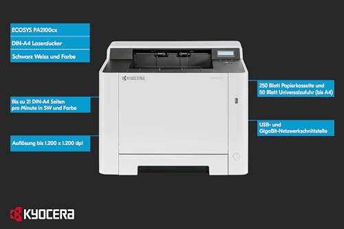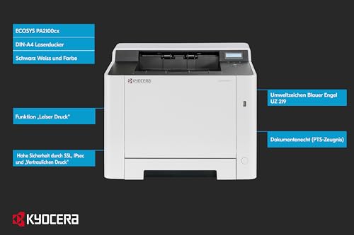 Kyocera Ecosys PA2100cx Laserdrucker Farbe. Farbdrucker mit 21 Seiten pro Minute. Farblaserdrucker inkl. LAN, USB 2.0 und Mobile-Print-Unterstützung
