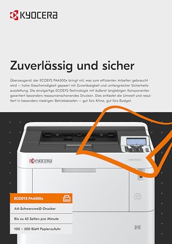 Die Installation und der Betrieb des Kyocera Ecosys PA4500x sind benutzerfreundlich gestaltet. Die Einrichtungsanleitung ist klar und verständlich, so dass auch weniger technisch versierte Nutzer schnell zu einer funktionierenden Konfiguration gelangen können.