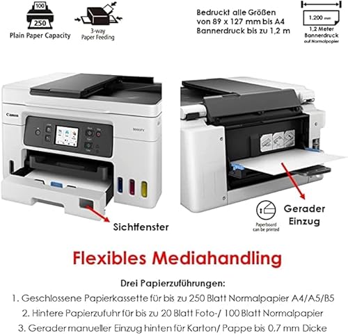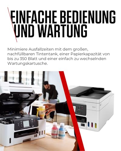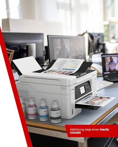Canon MAXIFY GX4050 MegaTank Multifunktionsdrucker 4in1 (Tintenstrahl, Druck, Kopie, Scan, Fax, ADF 35 Blatt, WLAN, LAN, Touch LCD, Duplex, niedrige Seitenkosten, hohe Reichweite, gerader Einzug) weiß