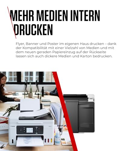 Der Canon MAXIFY GX4050 ist ein umfassendes Multifunktionssystem, das sich ideal für kleine bis mittelgroße Büros eignet. Er überzeugt nicht nur durch seine Effizienz beim Drucken, Scannen und Kopieren, sondern punktet auch mit niedrigen Druckkosten und einer hohen Reichweite. Dieses Gerät bietet eine Vielzahl von Funktionen, um den täglichen Bürobedarf zu decken und dabei das Budget zu schonen.