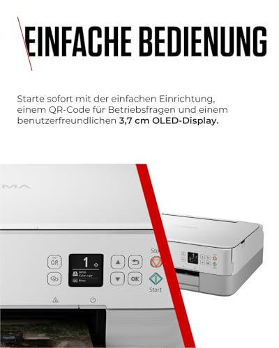 Der PIXMA TS5351i besticht durch ein modernes und elegantes Design, das in nahezu jedes Büroambiente passt. Mit einem kompakten Format lässt er sich leicht integrieren, ohne viel Platz zu beanspruchen. Das benutzerfreundliche OLED-Display sorgt für eine einfache Bedienung und bietet einen klaren Überblick über die aktuellen Funktionen.