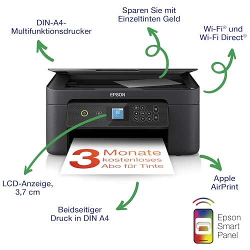 Der Epson Expression XP-3200 ist ein kabelloser Multifunktionsdrucker, der hervorragende Druckqualität bietet. Mit kostenloser Tinte für drei Monate und einer Zwei-Jahres-Garantie ist er ideal für alle Druckbedürfnisse zu Hause oder im Büro.