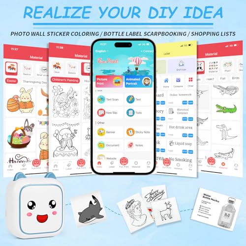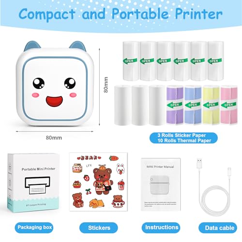 | Features | 【Bluetooth-Sofortverbindungsdrucker】: Der Drucker verwendet die ''Funprint''-APP-Bluetooth-Verbindung, es sind keine weiteren komplizierten Vorgänge erforderlich. Befolgen Sie einfach die Verbindungsanweisungen, um schnell eine Verbindung zu einem beliebigen Smartphone herzustellen, und Sie können Ihre Reise zum drahtlosen Schwarzweißdruck beginnen Um das Wachstum Ihres Kindes und die Bedeutung des Reisens festzuhalten, spüren Sie die Freude an schönen Erinnerungen., 【Thermal Inkless Printing Technology】: Der Bluetooth-Thermodrucker verwendet die Thermodrucktechnologie, verwendet keine Tinte, ist bequemer zu bedienen, umweltfreundlicher, unterhaltsamer und praktischer. Thermische Schwarz-Weiß-Druckbilder, damit Ihre Schwarz-Weiß-Fotos elegant und cool aussehen. Hinweis: Wenn der Druck nach mehrmaligem Gebrauch des Fotodruckers nicht klar ist, können Sie den Laserbalken des Druckers mit Alkohol abwischen (der Laserbalken befindet sich im Papierladefach)., 【Ausgezeichnete Leistung Bluetooth-Drucker】: Tragbarer Drucker mit super Druckqualität, 203 DPI hoher Auflösung, eingebautem wiederaufladbarem 1200-mAh-Li-Ion-Akku mit hoher Dichte, längerer Akkulaufzeit, hochwertiger Fotodrucker, um schöne Momente besser festzuhalten. Nachdem Sie diese wunderschöne Landschaft gesehen haben, können Sie die verlorene Schönheit in klaren Bildern wiederentdecken., 【Netter und praktischer Sofortdrucker】: Mini-Smartphone-Foto-Thermodrucker, elegantes und einfaches, aber niedliches Aussehen, kompakte und leichte Körpergröße, kann auf Reisen in eine Tasche oder Tasche gesteckt werden, Sie können ihn mitnehmen, einfach jedes Sie aufzeichnen etwas loggen möchte., 【Der beste Mini-Fotodrucker für Geschenke】: Er unterstützt eine Vielzahl von funktionalen Anwendungen und kann Fotos, Aufkleber, Arbeitspläne usw. drucken. Er ist eine ausgezeichnete Geschenkauswahl für Studenten, Paare, Familienmitglieder, Freunde usw. und ein kleiner Assistent, um ein gutes Leben aufzunehmen! |