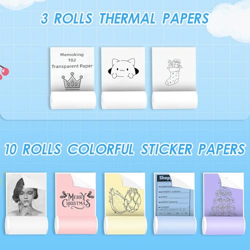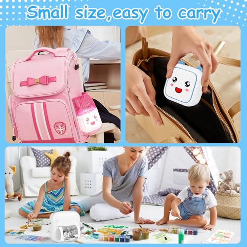 Ambesty Mini Drucker, Mobiler Fotodrucker, Tragbarer Mini Fotodrucker, Wireless Fotodrucker Thermodrucker, mit 13 Rollen Druckerpapie und 5 Buntstifte, Smartphone Bluetooth Drucker, für Lernhilfe