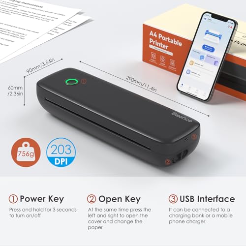 Bisofice L81 Mobiler Drucker A4 Bluetooth Thermodrucker A4 Tragbarer Drucker Klein Kompakt Portable Printer Unterstützen Thermopapier A4, Kompatibel mit Android iOS Mac