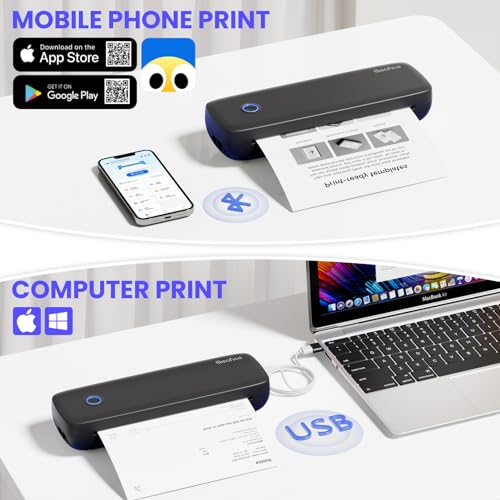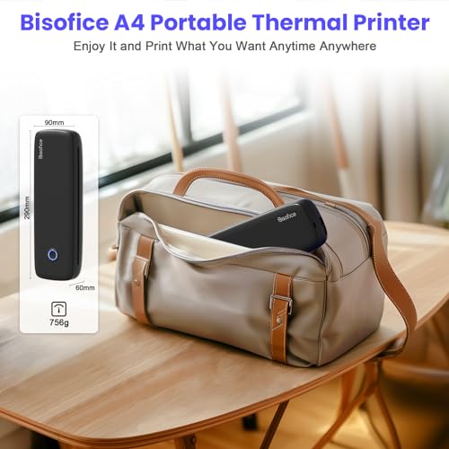 Bisofice 300dpi Mobiler Drucker A4 für Unterwegs Thermodrucker A4 Tragbarer Drucker Bluetooth Portable Printer Unterstützt 2“/3“/4“/8“ A4 Thermopapier, Kompatibel mit Android/iOS/Win/Mac