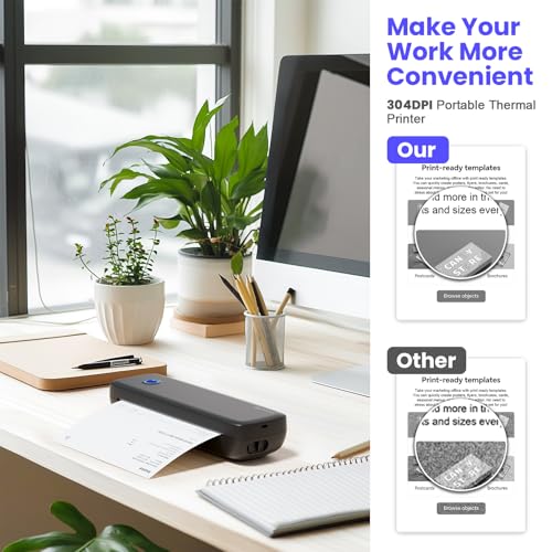 Der Bisofice mobile Thermodrucker überzeugt mit 304 DPI Druckqualität und einem praktischen, tragbaren Design. Ideal für unterwegs, druckt er ohne Tinte, unterstützt verschiedene Papiergrößen und verbindet sich einfach via Bluetooth mit deinen Geräten.