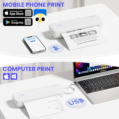 Bisofice Mobiler Drucker A4 für Unterwegs Thermodrucker A4 300dpi Tragbarer Drucker Handy Portable Printer Unterstützt 2“/3“/4“/A4 Thermopapier, Kompatibel mit Android/iOS/Win/Mac