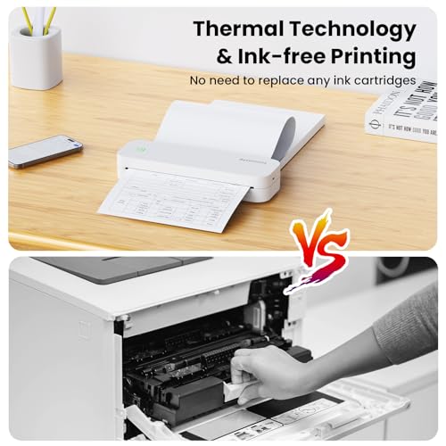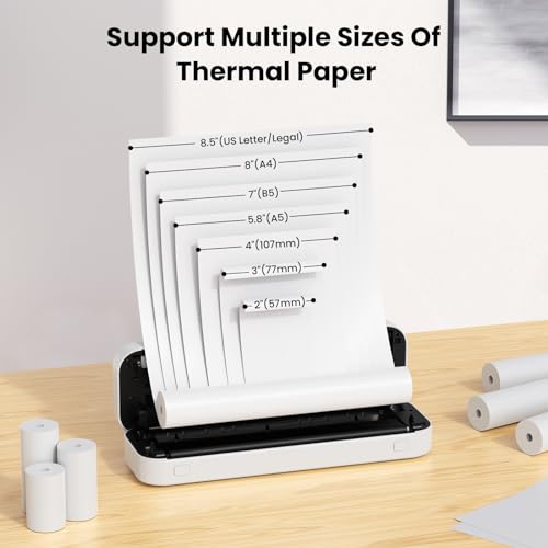 ByteCintia Mobiler Drucker Bluetooth Thermodrucker A4, 300dpi Tragbarer Drucker Inkless Printermit Android & iOS für Handy & Laptop, Unterstützt 210x297mm A4 Thermopapier, D80 Weiß