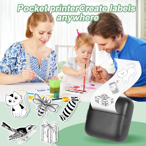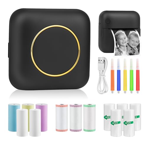 GuKKK Mini Drucker, Mobiler Fotodrucker, Tragbarer Mini Fotodrucker, Wireless Fotodrucker Thermodrucker, mit 13 Rollen Druckerpapie und 5 Buntstifte, Smartphone Bluetooth Drucker, für Liste, Journal