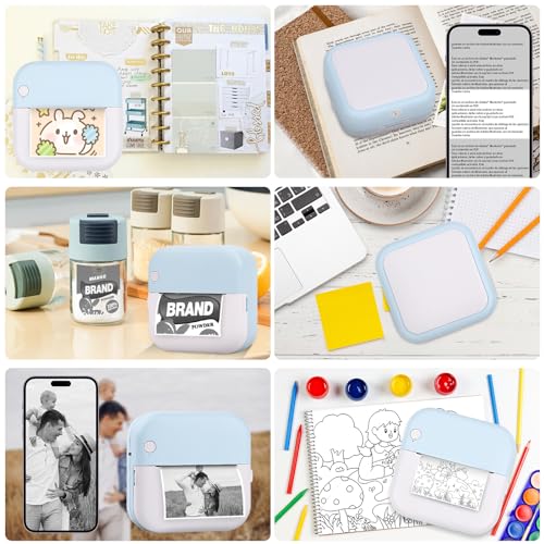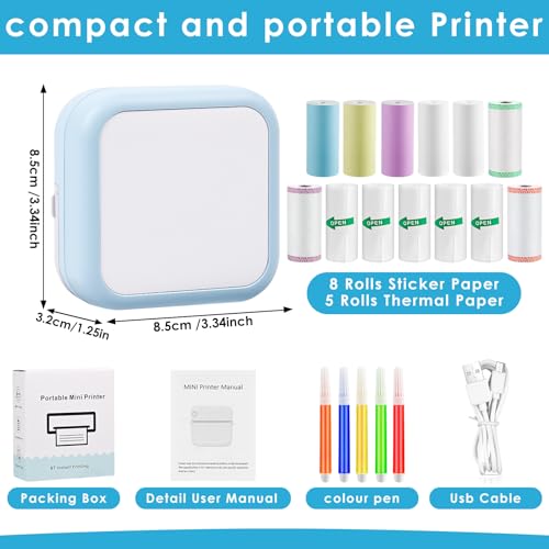 GuKKK Mini Drucker, Mobiler Fotodrucker, Tragbarer Mini Fotodrucker, Wireless Fotodrucker Thermodrucker, mit 13 Rollen Druckerpapie und 5 Buntstifte, Smartphone Bluetooth Drucker, für Liste, Journal