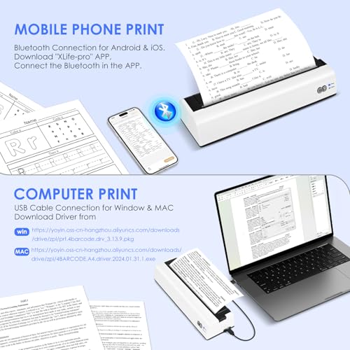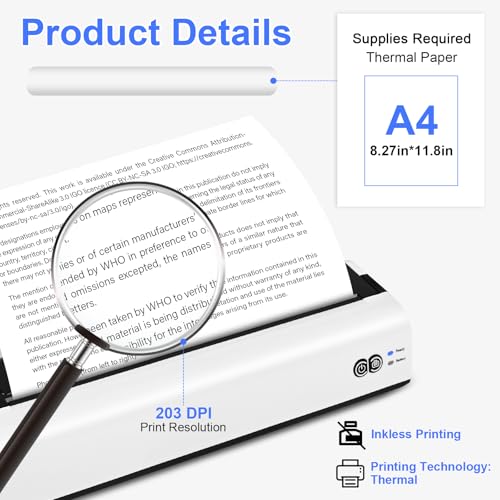 GuKKK Mobiler Drucker A4 Tragbarer Thermodrucker 4.88
