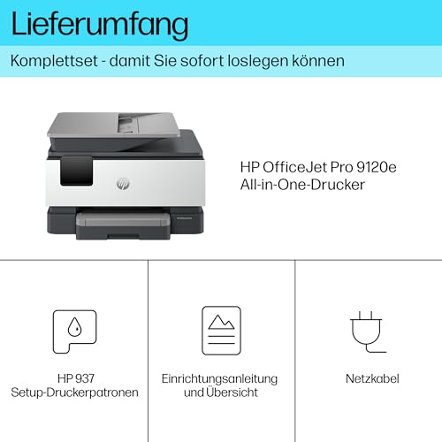 HP OfficeJet Pro 9120e Multifunktionsdrucker, 3 Monate gratis drucken mit HP Instant Ink inklusive, HP+, Drucker, Scanner, Kopierer, Fax, WLAN, LAN, Duplex, Airprint, Grau-Weiß