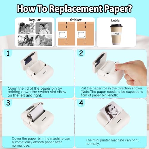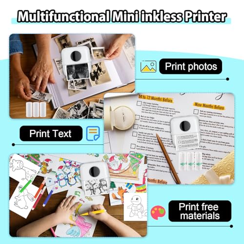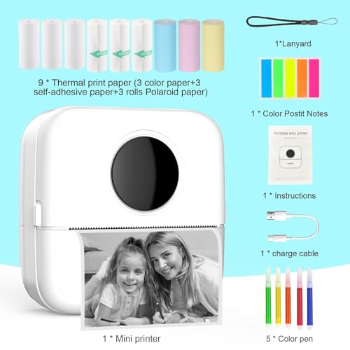 | Features | Multifunktionaler Mini Drucker: Ein lustiger kleiner Drucker, der für die Aufzeichnung Ihres Lebens entwickelt wurde, kann nicht nur Fotos und Etiketten direkt drucken, sondern auch selbst bearbeitete Memos, Nachrichten, Muster, Listen, Aufzeichnungen, QR. Dazu die passende Anwendung hat verschiedene Arten von Schriftarten und Themen, aus denen Sie auswählen können, um Ihre vielfältigen Anforderungen zu erfüllen., Bluetooth Drucker: Gehen Sie zuerst zum Apple Store oder Google, um nach "Tiny Print" zu suchen, um die kostenlose App herunterzuladen, halten Sie dann die Ein-/Aus-Taste des Druckers 3 Sekunden lang gedrückt, um ihn einzuschalten, und schalten Sie dann Bluetooth ein. Ihr Smartphone oder Tablet, um sich drahtlos zu verbinden. Sie können Ihre Verbindung in "Mein Dvice" in der App überprüfen. Der tragbare Mini-Drucker ist mit iOS- und Android-Systemen kompatibel., 10 Rollen Thermopapier: Unser Bluetooth-Taschendrucker wird mit 5 Rollen selbstklebendem Thermopapier und 5 Rollen Thermopapier geliefert, um Ihren unterschiedlichen Anforderungen gerecht zu werden. Großartiges Papier ist in der Lage, klare und reibungsbeständige Grafiken zu drucken, wodurch Ihre Arbeit und Ihr Leben raffiniert und organisiert bleiben. Bietet Ihnen eine ganz neue Erfahrung beim Drucken von Bildern und Text., Tragbar und Dauerhaft: Drucker mit eingebautem wiederaufladbarem 1200-mAh-Li-Ion-Akku kann Fotos jederzeit und überall drucken.Mit Druckkopf mit 205 DPI Auflösung und Druck mit einer Geschwindigkeit von 10 mm/s, klarem Druck und stabiler Leistung. Der Fotodrucker mit Thermodrucktechnik und hochwertigem Druckkopf, Thermopapier statt Tinte, leiser, schneller und energieeffizienter., Paket beinhaltet: 1 * Taschendrucker; 10 *Rollen Thermopapier geliefert; 1 * bunt Aufkleberpapier; 1 * Schlüsselband,5*Farbstift; 1 * USB-Kabel, 1 * Benutzerhandbuch. Er kann verwendet werden als Geschenk für Ihre Kinder, Liebhaber, Freunde und Familienmitglieder an wichtigen Tagen wie Muttertag, Vatertag, Kindertag und anderen wichtigen Festen. |