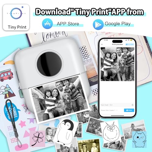 Der Drucker lässt sich dank seines intuitiven Designs und der einfachen Bluetooth-Verbindung leicht einrichten. Mit der kostenlosen App Tiny Print können Nutzer mühelos drucken, indem sie einfach ihr Smartphone oder Tablet verbinden. Die Anwendung bietet verschiedene Schriftarten und Designs, um die Druckergebnisse individuell anzupassen.