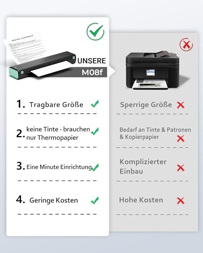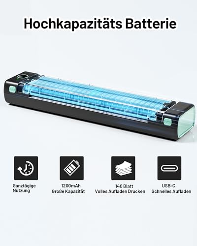 | Features | [Tragbarer Mini Drucker A4]: Itari Bluetooth Drucker ist kompatibel mit Ihren Smartphones oder Laptops, einschließlich iOS- und Android-Geräten; Drucken Sie jederzeit und überall drahtlos, Plug and Play ohne Wartezeit; Mit klein und kompaktem Design, kann es leicht in Ihre Aktentasche oder Computertasche passen, ideal für Reisen/Auto/Büro/Unterwegs und zu Hause verwenden, [Tintenlose Thermodrucktechnologie]: Itari Handy Drucker übernehmen überlegene wärmebildtechnologie mit No Toner, NO Tinte und kein Chaos, mehr wirtschaftlich und umweltfreundlich; Smooth Drucken mit hoher Auflösung von bis zu 203DPI sorgen für klare Schriftarten und gestochen scharfe Grafiken, ID-Karte oder Tattoo druck kann auch erfüllt werden, ideale drahtlose Drucker, um Ihren täglichen Bedarf zu erfüllen (Unterstützt 210x297mm A4 Thermopapier), [Mobiler Drucker mit großer Akku-Kapazität]: Der reisedrucker ist mit einem 1200mAh-Akku ausgestattet, der bei voller Aufladung bis zu 140 Blatt A4-Thermopapier bedrucken kann, was hilfreich ist, wenn Sie geschäftlich unterwegs sind oder sich in einem Fahrzeug oder Reisen, [Anfängertauglich]: Dieser drucker klein ist ganz einfach einzurichten. Installieren Sie einfach die App auf Ihrem Telefon oder Tablet, um Ihre Dokumente oder Bilder mit einem Klick zu drucken; Sie können auch eine Verbindung zu Ihrem Computer über ein Typ-C-Kabel zum Drucken herstellen, das Windows, Mac OS und Linux-System unterstützt, [Lebenslange technische Unterstützung]: Itari portable printer werden vor dem Versand streng geprüft, um zuverlässige Kompatibilität und hervorragende Drucke mit 24 Monaten Garantie zu bieten, bitte seien Sie versichert, um zu verwenden; Jeder mobiler drucker a4 für unterwegs geliefert mit 5 Test-Thermopapier für verwendung, engagierte technische Team bietet lebenslange Kundenbetreuung mit professionellen technischen Support über WhatsApp, Skype, E-Mail und Telefonanruf |