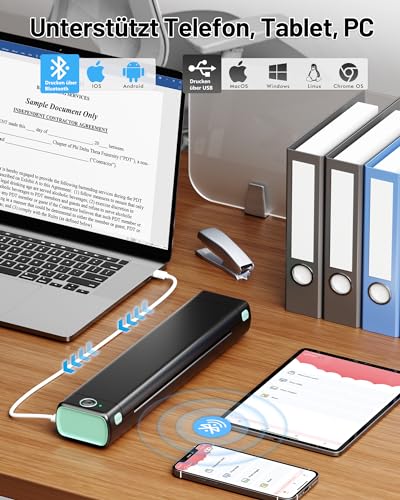 Der Drucker kombiniert die Funktionen eines tragbaren Geräts mit breiter Kompatibilität. Er ist nicht nur für Smartphones und Tablets geeignet, sondern kann auch über ein typisches USB-C-Kabel mit Computern jeglicher Art verbunden werden.