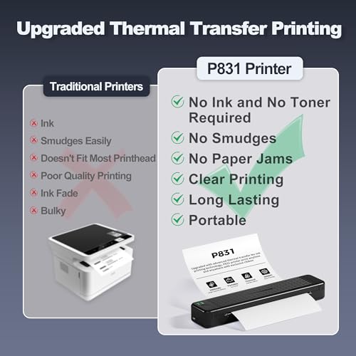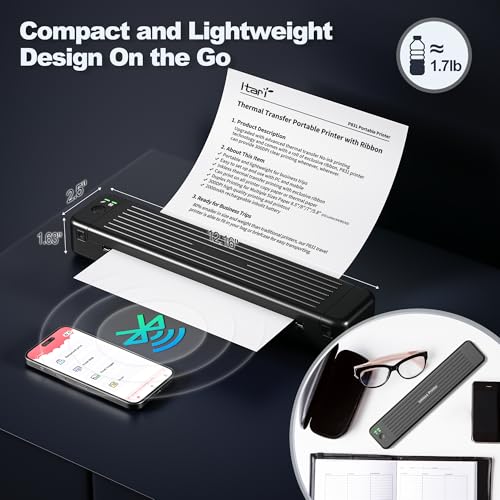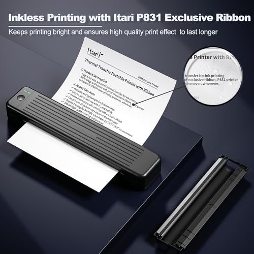 | Features | [Neuer Portable Printer]: Itari drucker klein kompakt ist kompatibel mit Ihren Smartphones oder Laptops, einschließlich iOS und Android Geräten; Drucken Sie jederzeit und überall drahtlos, Plug and Play ohne Wartezeit; Mit klein und kompaktem Design, kann es leicht in Ihre Aktentasche oder Computertasche passen, ideal für Reisen/Auto/Büro/Unterwegs und zu Hause verwenden; (Hinweis: Bitte verwenden Sie kein Ladegerät mit einer Ausgangsspannung über 5 V), [Drucker Ohne Patronen unterstützt normalen Kopierpapier druck]: Itari stencil drucker übernehmen Voraus Thermotransfer Technologie unterstützt alle Kopierpapier mit Kein Toner, keine Tinte und kein Chaos; Arbeiten mit einem exklusiven Thermotransferfolie, bietet klarer Druckeffekt und längere Haltbarkeit als herkömmliche thermodrucker, [Praktischer Mobiler Drucker mit Multisize Druck]: Design mit verstellbarer Papierführungsklammer, Sie können alle Arten von Papier oder Etiketten mit einer Breite von 8,5"/8"/7"/5,8" (US Letter/A4/B5/A5) bedrucken, weit verbreitet für mehrere Verwendungszwecke, Sie können Dokumente, Fotos, Grußkarten, Adressetiketten, Cliparts usw; (Unterstützt nur monochromen Druck), [Verbesserte auf 300 DPI hohe Auflösung]: Der tragbare, kabellose Drucker P831 von Itari ist mit einer hohen Auflösung von 203DPI bis 300DPI ausgestattet, die für klarere Schriften und gestochen scharfe Grafiken sorgt, um bessere Druckergebnisse zu erzielen. Er ist der ideale drucker ohne tinte für Geschäftsdrucke und erfüllt Ihre täglichen Anforderungen, [Große Batteriekapazität Tragbarer Drucker]: Dieser mobiler drucker a4 für unterwegs hat einen 2000mAh Akku eingebaut, der bei voller Ladung bis zu 120 Blatt A4 Papier bedrucken kann, was hilfreich ist, wenn Sie geschäftlich unterwegs sind oder in einem Fahrzeug oder kleinen Arbeitsbereich, auch ideal für den Heimgebrauch sowie ein guter Partner für Ihre Kinder beim Lernen, [Anfängertauglich]: Dieser mini drucker A4 ist ganz einfach einzurichten. Installieren Sie einfach die App auf Ihrem Telefon oder Tablet, um Ihre Dokumente oder Bilder mit einem Klick zu drucken; Sie können auch eine Verbindung zu Ihrem Computer über ein Typ-C Kabel zum Drucken, die Windows, Mac OS und Linux System unterstützt, [Lebenslange technische Unterstützung]: Itari handy drucker werden vor dem Versand streng geprüft, um zuverlässige Kompatibilität und hervorragende Drucke, bitte seien Sie versichert, um zu verwenden; Jeder Bluetooth drucker geliefert mit Thermoband für verwendung, engagierte technische Team bietet lebenslange Kundenbetreuung mit professionellen technischen Support über WhatsApp, Skype, E-Mail und Telefonanruf |