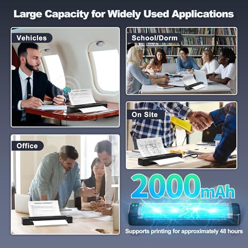 - Batteriebetrieb mit einer Druckkapazität von bis zu 120 Blatt A4 mit einer einzigen Ladung.